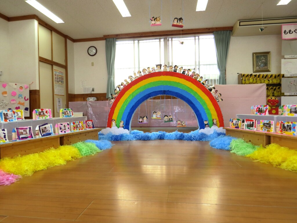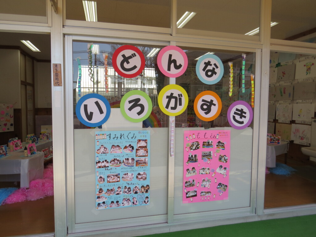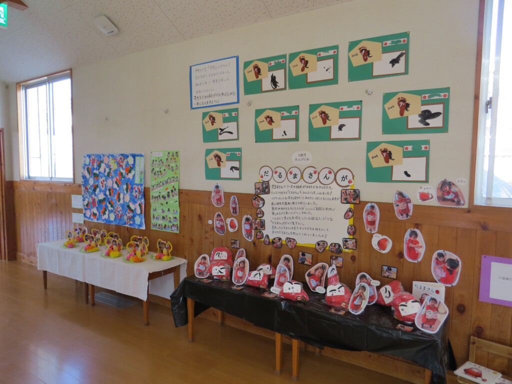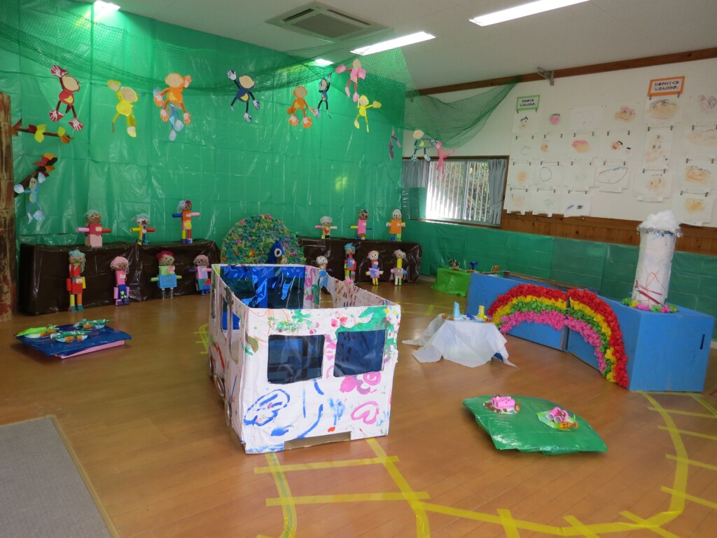 0歳児~年長児までのそれぞれのテーマに合わせた作品を、お家の方と一緒に見てもらいました。
