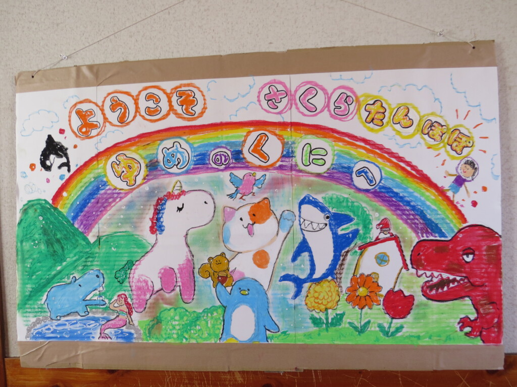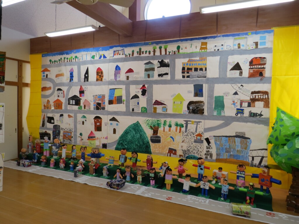 子どもたちから、どんな作品を作っているか聞いていたけれど、実際に見てみて、なるほど!となった方も、まだまだ小さい年齢だけど、こんな可愛い作品に仕上がっている!大きくなったらこんなに上手に絵を描けるんだ。小さいころに比べてしっかり絵を描けるようになったなぁ。などいろんな思いで作品を見て頂きました。